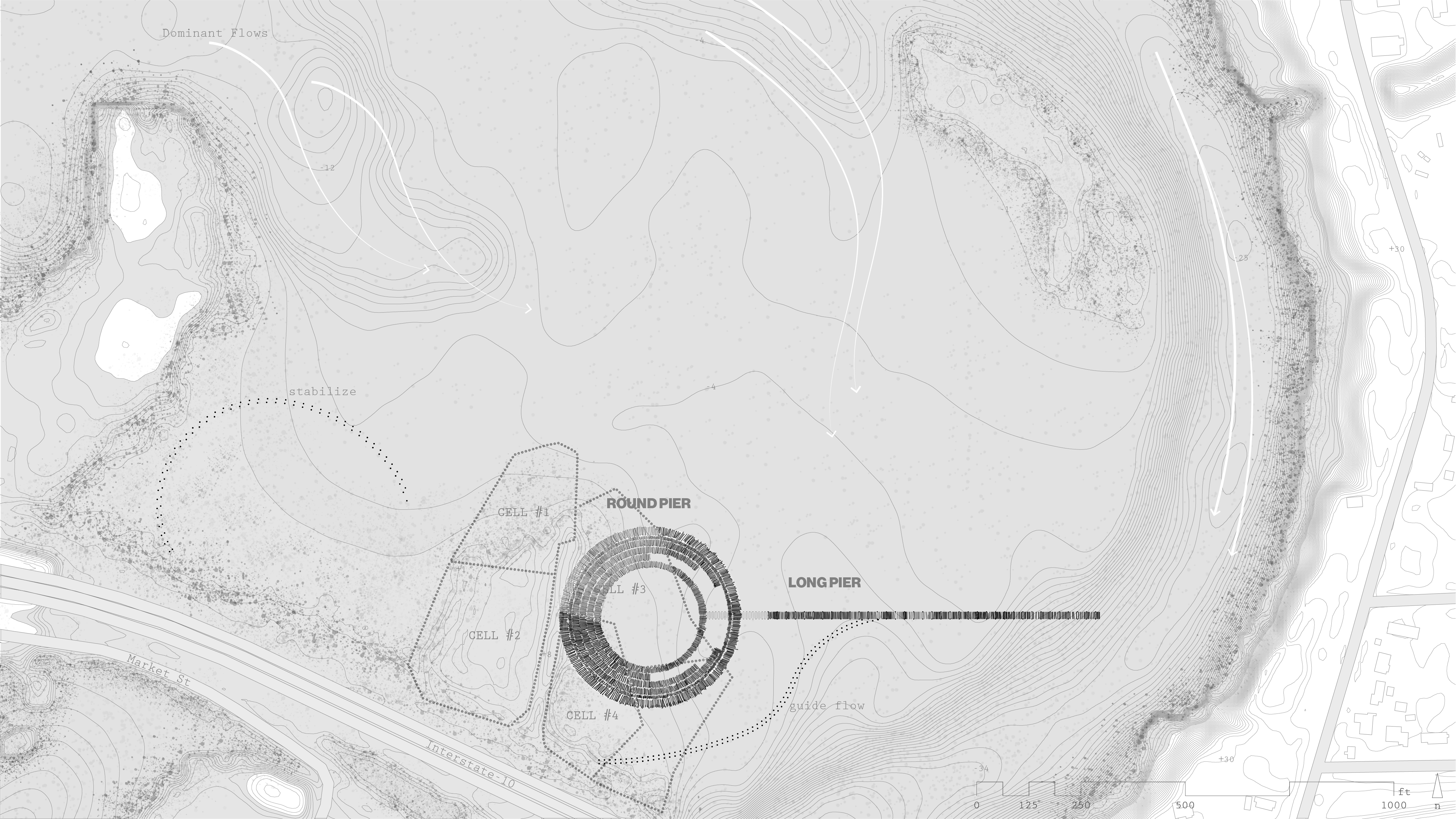 In 2008, the site was listed as an active Superfund Site and was closed to the public. The EPA has a current remediation strategy for the Pits that carve deep scars into the land at the Northern and Southern Impoundments. My strategy is to use this EPA cleanup as a design opportunity - To weave in the storm, the body, and the lives of those that enjoy this place.