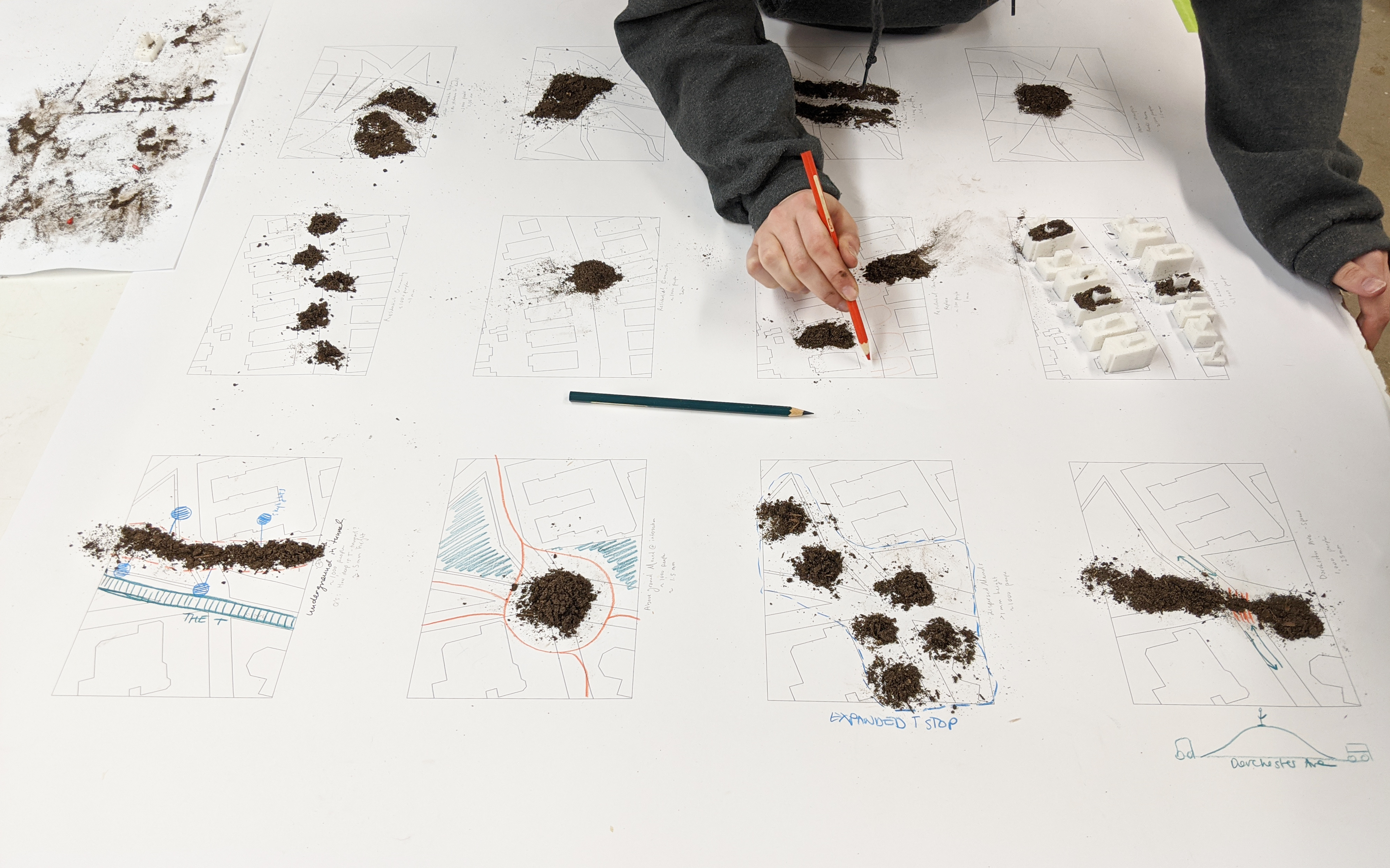 We situated our two main project sites among the existigng network of cemeteries in Dorchester. At these sites, we explored the poetic and productive application of the soil that, unlike the cemetery, activate the surrounding streets, businesses, and communities through the design of a memorial plaza and market and through the growth of specific crops at the scale of an urban farm. We are taking the cemetery from outside the city, seemingly bound and static, to something embedded in the pulse of the city.